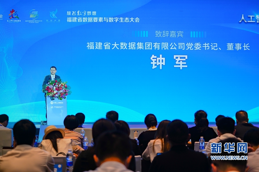 福建省大數(shù)據(jù)集團有限公司黨委書記、董事長鐘軍在論壇上致辭。新華網(wǎng) 蔣巧玲 攝