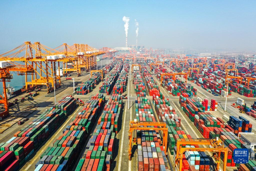 這是廣西欽州港集裝箱碼頭(2021年1月14日攝,無人機照片)。新華社記者 曹祎銘 攝