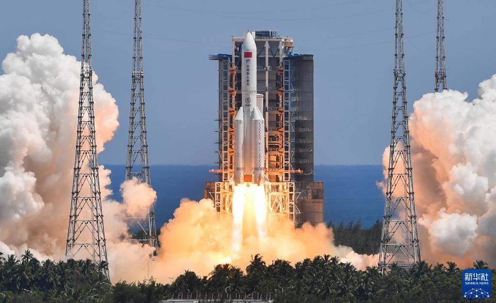 7月24日,搭載問(wèn)天實(shí)驗(yàn)艙的長(zhǎng)征五號(hào)B遙三運(yùn)載火箭在文昌航天發(fā)射場(chǎng)成功發(fā)射。新華社記者 楊冠宇 攝