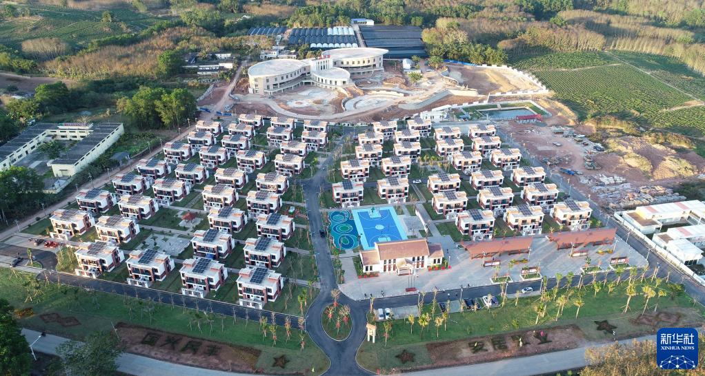 從熱帶雨林深處搬遷出來(lái)的生態(tài)移民村——海南省白沙黎族自治縣牙叉鎮(zhèn)新高峰村(2021年2月5日攝,無(wú)人機(jī)照片)。新華社記者 楊冠宇 攝