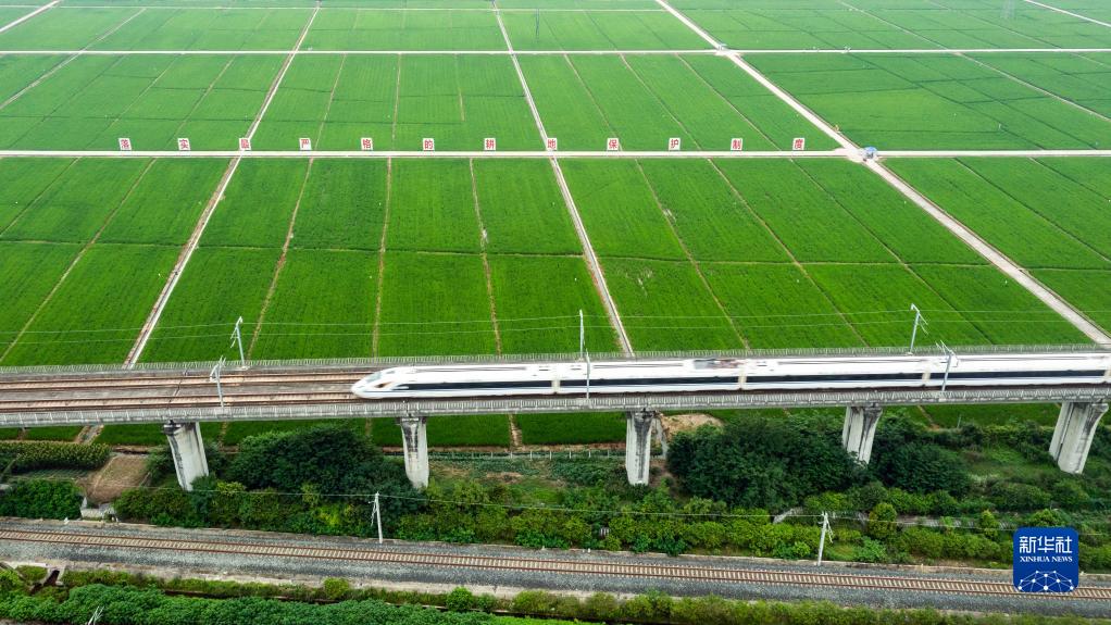 以四川省眉山市東坡區(qū)太和鎮(zhèn)永豐村高標(biāo)準(zhǔn)水稻種植基地為重要組成部分的東坡區(qū)國(guó)家現(xiàn)代農(nóng)業(yè)產(chǎn)業(yè)園(2022年6月22日攝,無(wú)人機(jī)照片)。新華社記者 沈伯韓 攝