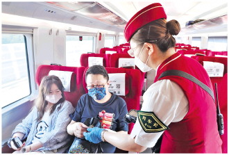 “我們會(huì)為兒童提供兒童讀物,為哺乳期婦女提供私密空間,對(duì)單獨(dú)乘車的老人、盲人以及行動(dòng)不便的旅客進(jìn)行重點(diǎn)服務(wù),介紹車內(nèi)安全注意事項(xiàng),幫助旅客解決實(shí)際困難,指引去衛(wèi)生間,送水送飯,與站臺(tái)值班員辦理交接,方便出站,用實(shí)際行動(dòng)護(hù)送旅客平安出行?!闭f起服務(wù)內(nèi)容,盧雅靜滔滔不絕。