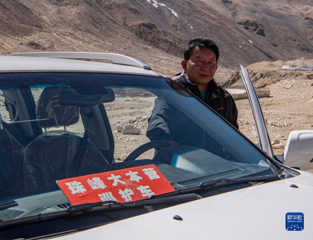 拉巴次仁駕駛巡護(hù)車在珠穆朗瑪峰國家級自然保護(hù)區(qū)內(nèi)巡邏(2020年5月15日攝)。新華社記者 孫非 攝
