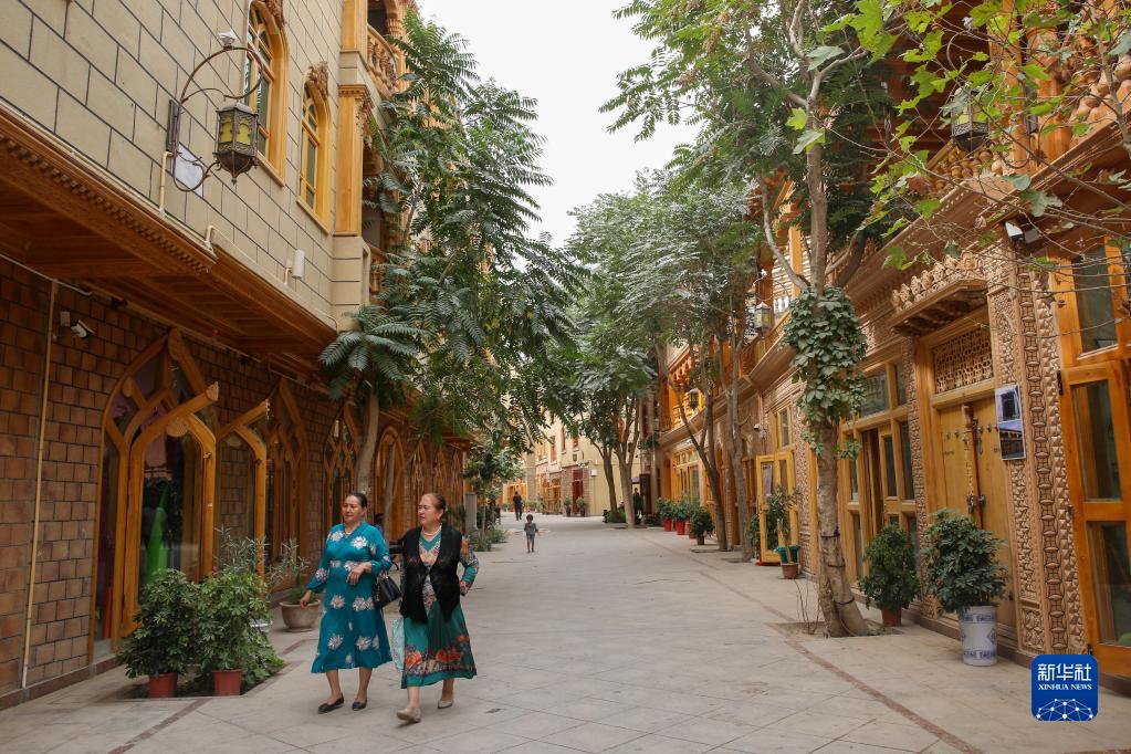 這是在新疆和田市拍攝的由北京市援疆資金支持改造的團(tuán)城(2019年8月1日攝)。為改善居住環(huán)境,保持和田歷史文化街區(qū)風(fēng)貌,當(dāng)?shù)乩帽本┦性Y金,對(duì)和田老城區(qū)進(jìn)行保護(hù)、安居、旅游與就業(yè)四位一體的改造。新華社發(fā)(許珠珠 攝)
