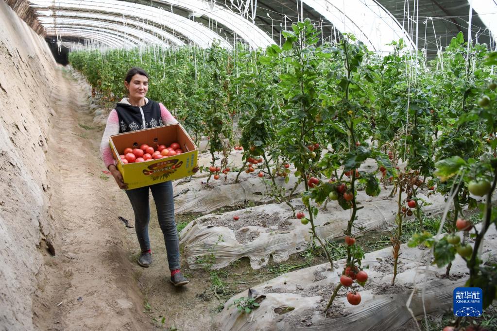 在新疆莎車縣伊什庫力鄉(xiāng)設(shè)施農(nóng)業(yè)基地,種植戶搬運(yùn)剛采摘的西紅柿(2020年3月18日攝)。該設(shè)施農(nóng)業(yè)基地是在上海援疆莎車分指揮部協(xié)調(diào)推動(dòng)下建立的。新華社記者 丁磊 攝