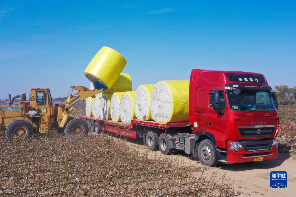 新疆生產(chǎn)建設(shè)兵團第六師一〇三團蔡家湖鎮(zhèn)的職工在采收棉花(2020年9月23日攝)。新華社發(fā)(李華北 攝)