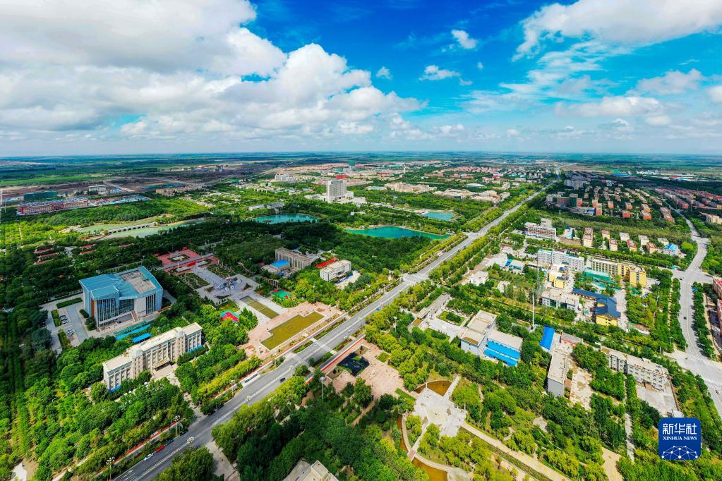 這是2021年7月22日拍攝的新疆生產(chǎn)建設(shè)兵團第三師圖木舒克市(無人機照片)。新華社發(fā)(王俊龍 攝)