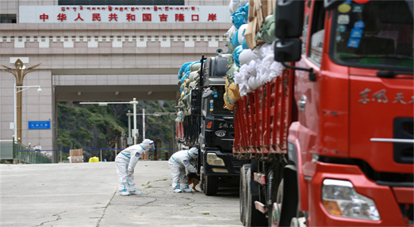 隨著吉隆口岸外貿(mào)企業(yè)復(fù)工復(fù)產(chǎn),口岸逐步恢復(fù)了昔日繁忙景象。連日來,一輛輛載滿貨物的貨車經(jīng)吉隆出入境邊防檢查站執(zhí)勤移民管理警察全面檢查,完成查驗(yàn)手續(xù)辦理后,順利有序通關(guān)。