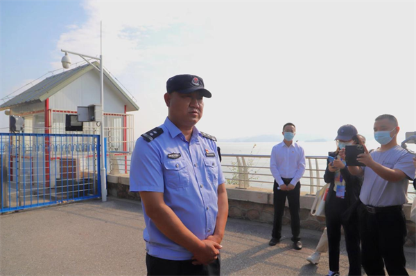 圖為北京市密云區(qū)水庫(kù)綜合執(zhí)法大隊(duì)水上分隊(duì)隊(duì)長(zhǎng)崔小軍接受采訪