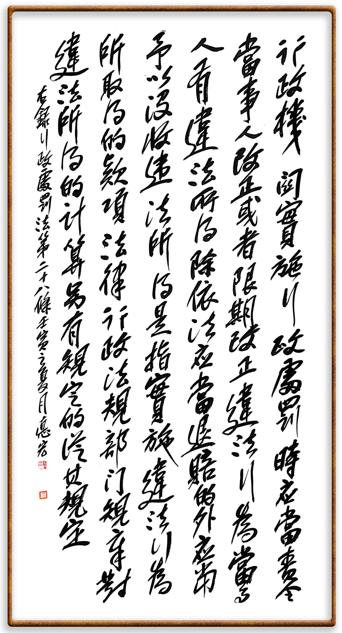 繼《中華人民共和國民法典》《中華人民共和國土地管理法》《中華人民共和國土地管理法實施條例》《中華人民共和國法律援助法》之后,法治日報社聯合北京市司法局、北京市書法家協會,將筆端對準《中華人民共和國憲法》和《中華人民共和國行政處罰法》。