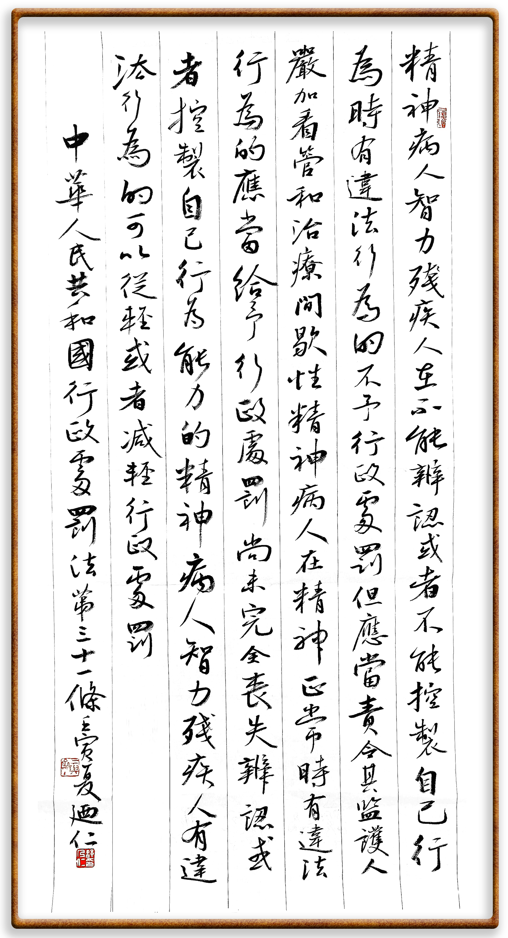 繼《中華人民共和國民法典》《中華人民共和國土地管理法》《中華人民共和國土地管理法實(shí)施條例》《中華人民共和國法律援助法》之后,法治日?qǐng)?bào)社聯(lián)合北京市司法局、北京市書法家協(xié)會(huì),將筆端對(duì)準(zhǔn)《中華人民共和國憲法》和《中華人民共和國行政處罰法》。
