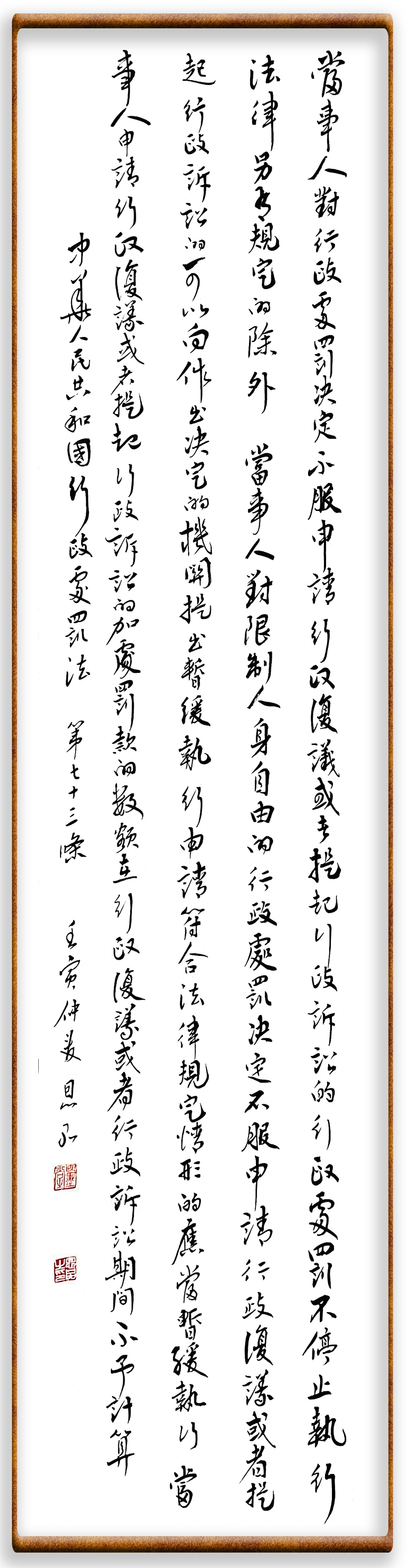 繼《中華人民共和國(guó)民法典》《中華人民共和國(guó)土地管理法》《中華人民共和國(guó)土地管理法實(shí)施條例》《中華人民共和國(guó)法律援助法》之后,法治日?qǐng)?bào)社聯(lián)合北京市司法局、北京書法家協(xié)會(huì),將筆端對(duì)準(zhǔn)《中華人民共和國(guó)憲法》和《中華人民共和國(guó)行政處罰法》。