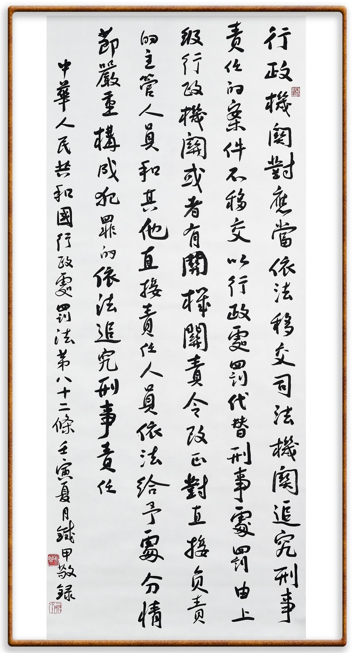 繼《中華人民共和國(guó)民法典》《中華人民共和國(guó)土地管理法》《中華人民共和國(guó)土地管理法實(shí)施條例》《中華人民共和國(guó)法律援助法》之后,法治日?qǐng)?bào)社聯(lián)合北京市司法局、北京書法家協(xié)會(huì),將筆端對(duì)準(zhǔn)《中華人民共和國(guó)憲法》和《中華人民共和國(guó)行政處罰法》。