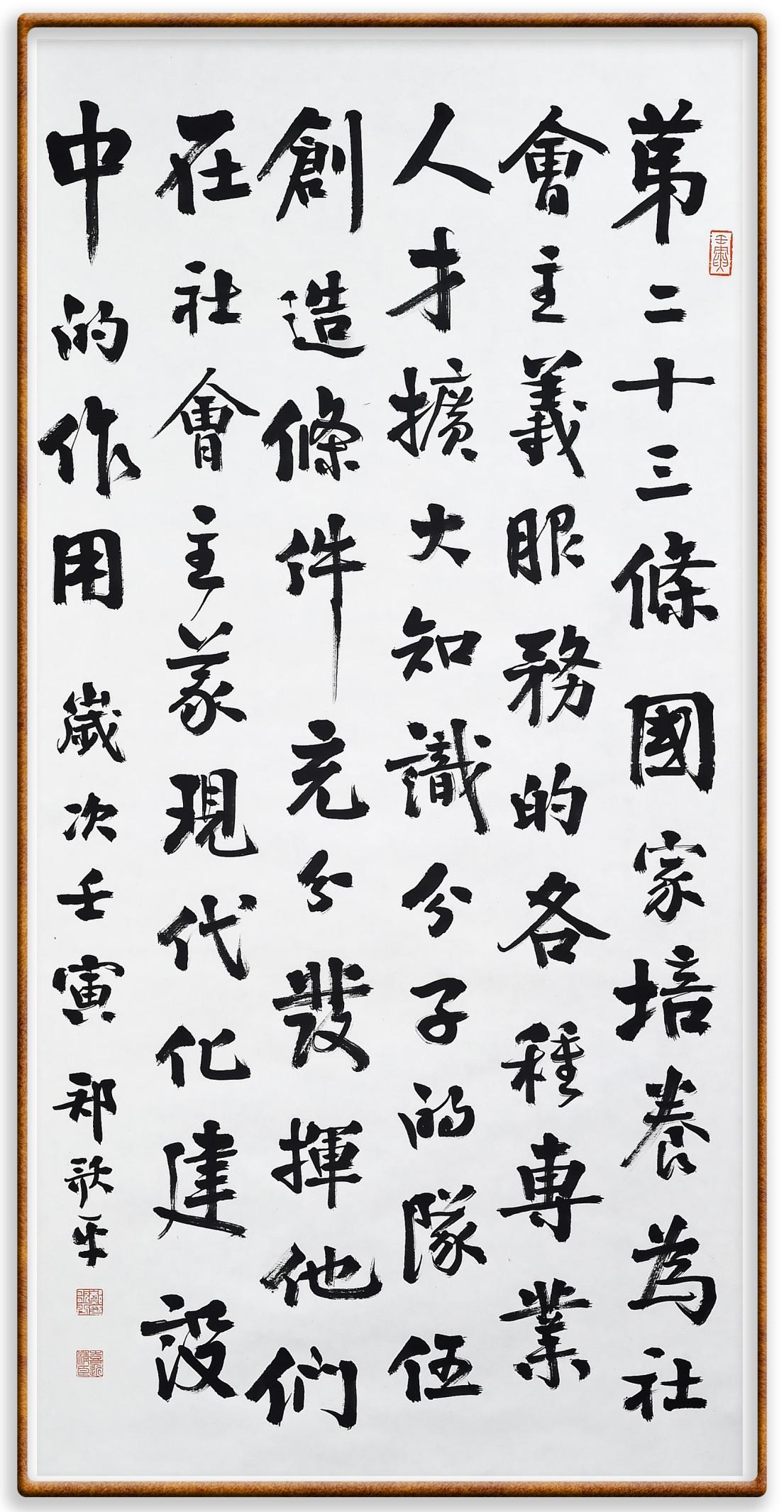 繼《中華人民共和國民法典》《中華人民共和國土地管理法》《中華人民共和國土地管理法實(shí)施條例》《中華人民共和國法律援助法》之后,法治日報社聯(lián)合北京市司法局、北京書法家協(xié)會,將筆端對準(zhǔn)《中華人民共和國憲法》和《中華人民共和國行政處罰法》。