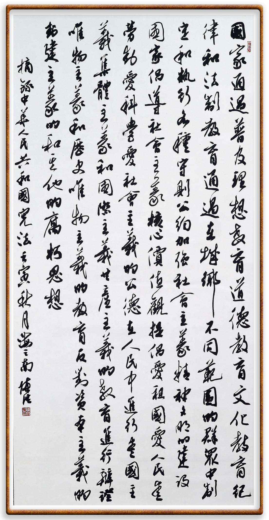 繼《中華人民共和國民法典》《中華人民共和國土地管理法》《中華人民共和國土地管理法實(shí)施條例》《中華人民共和國法律援助法》之后,法治日報(bào)社聯(lián)合北京市司法局、北京書法家協(xié)會(huì),將筆端對準(zhǔn)《中華人民共和國憲法》和《中華人民共和國行政處罰法》。
