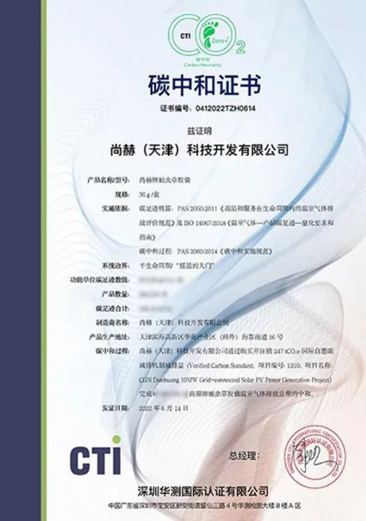 2022年6月,尚赫牌蛹蟲草膠囊獲得“碳中和”認(rèn)證證書,該認(rèn)證由中國合格評定國家認(rèn)可委員會(CNAS)認(rèn)可的第三方認(rèn)證機(jī)構(gòu),按照國際通用標(biāo)準(zhǔn),對尚赫牌蛹蟲草膠囊的產(chǎn)品碳足跡(半生命周期)進(jìn)行評價分析,尚赫牌蛹蟲草膠囊也成為營養(yǎng)健康行業(yè)內(nèi)首個獲得“碳中和”認(rèn)證的保健食品。