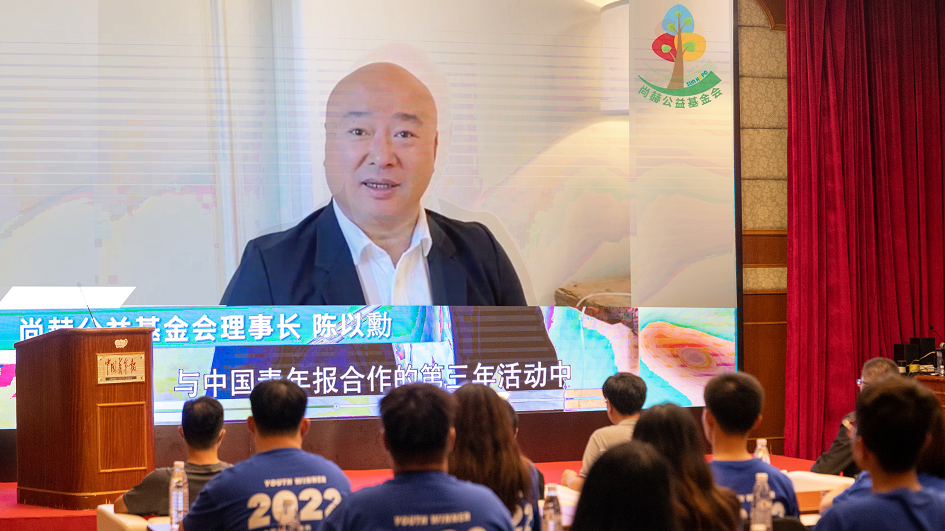 尚赫公益基金會理事長陳以勳在“校媒記者訓(xùn)練營”活動中與學(xué)子們在線交流