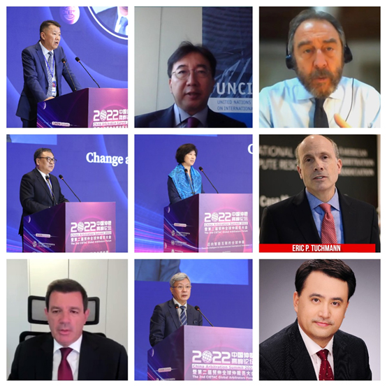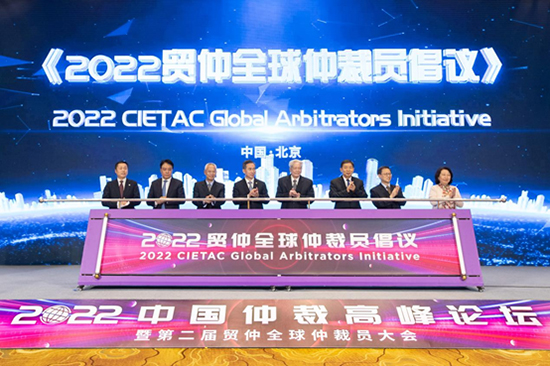 (任鴻斌會長、王勝明副主任、熊選國副部長、劉貴祥專委、柯良棟副會長、費宗祎榮譽仲裁員、鄭若驊仲裁員、王承杰秘書長共同支持發(fā)布《2022貿(mào)仲全球仲裁員倡議》)