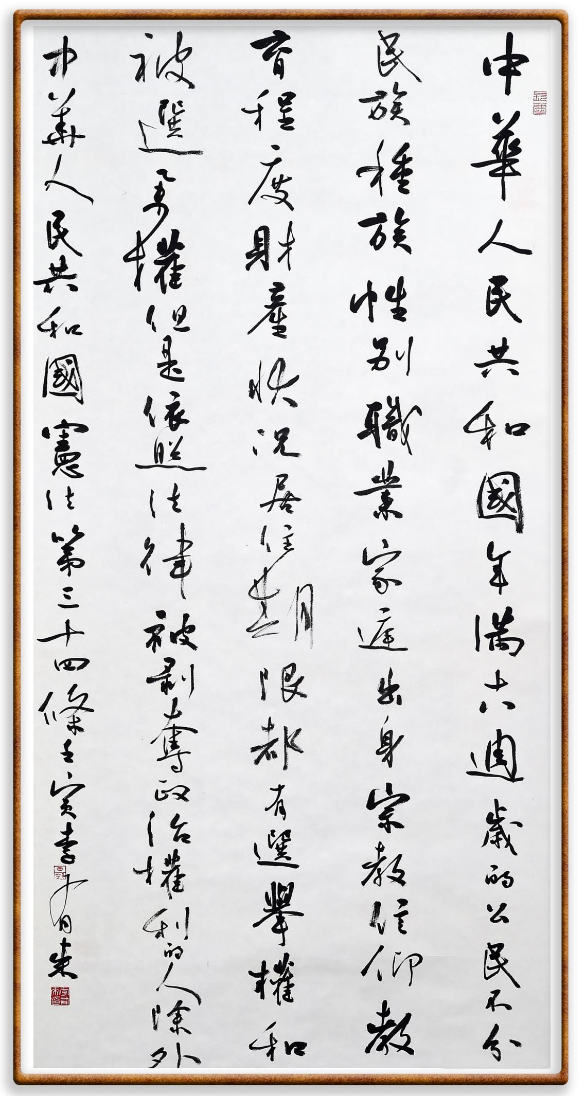 繼《中華人民共和國(guó)民法典》《中華人民共和國(guó)土地管理法》《中華人民共和國(guó)土地管理法實(shí)施條例》《中華人民共和國(guó)法律援助法》之后,法治日?qǐng)?bào)社聯(lián)合北京市司法局、北京書(shū)法家協(xié)會(huì),將筆端對(duì)準(zhǔn)《中華人民共和國(guó)憲法》和《中華人民共和國(guó)行政處罰法》。