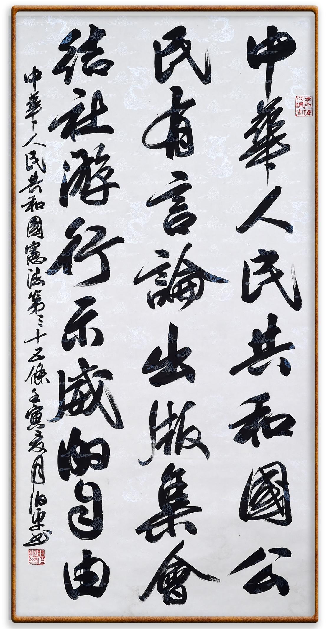 繼《中華人民共和國民法典》《中華人民共和國土地管理法》《中華人民共和國土地管理法實(shí)施條例》《中華人民共和國法律援助法》之后,法治日?qǐng)?bào)社聯(lián)合北京市司法局、北京書法家協(xié)會(huì),將筆端對(duì)準(zhǔn)《中華人民共和國憲法》和《中華人民共和國行政處罰法》。