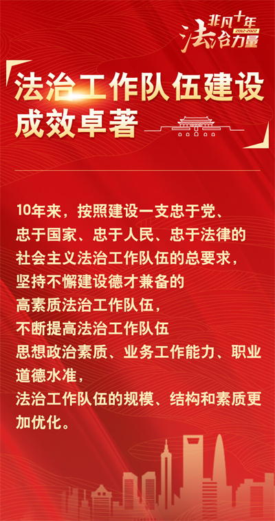法治網(wǎng)精心策劃制作十期海報,帶您一起領(lǐng)略非凡十年的法治力量!今天為您奉上第十期“法治工作隊伍建設(shè)成效卓著”。