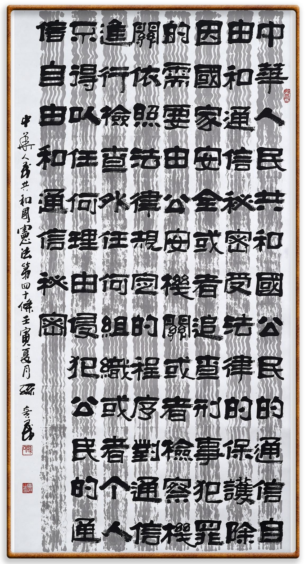 繼《中華人民共和國民法典》《中華人民共和國土地管理法》《中華人民共和國土地管理法實(shí)施條例》《中華人民共和國法律援助法》之后,法治日?qǐng)?bào)社聯(lián)合北京市司法局、北京書法家協(xié)會(huì),將筆端對(duì)準(zhǔn)《中華人民共和國憲法》和《中華人民共和國行政處罰法》。
