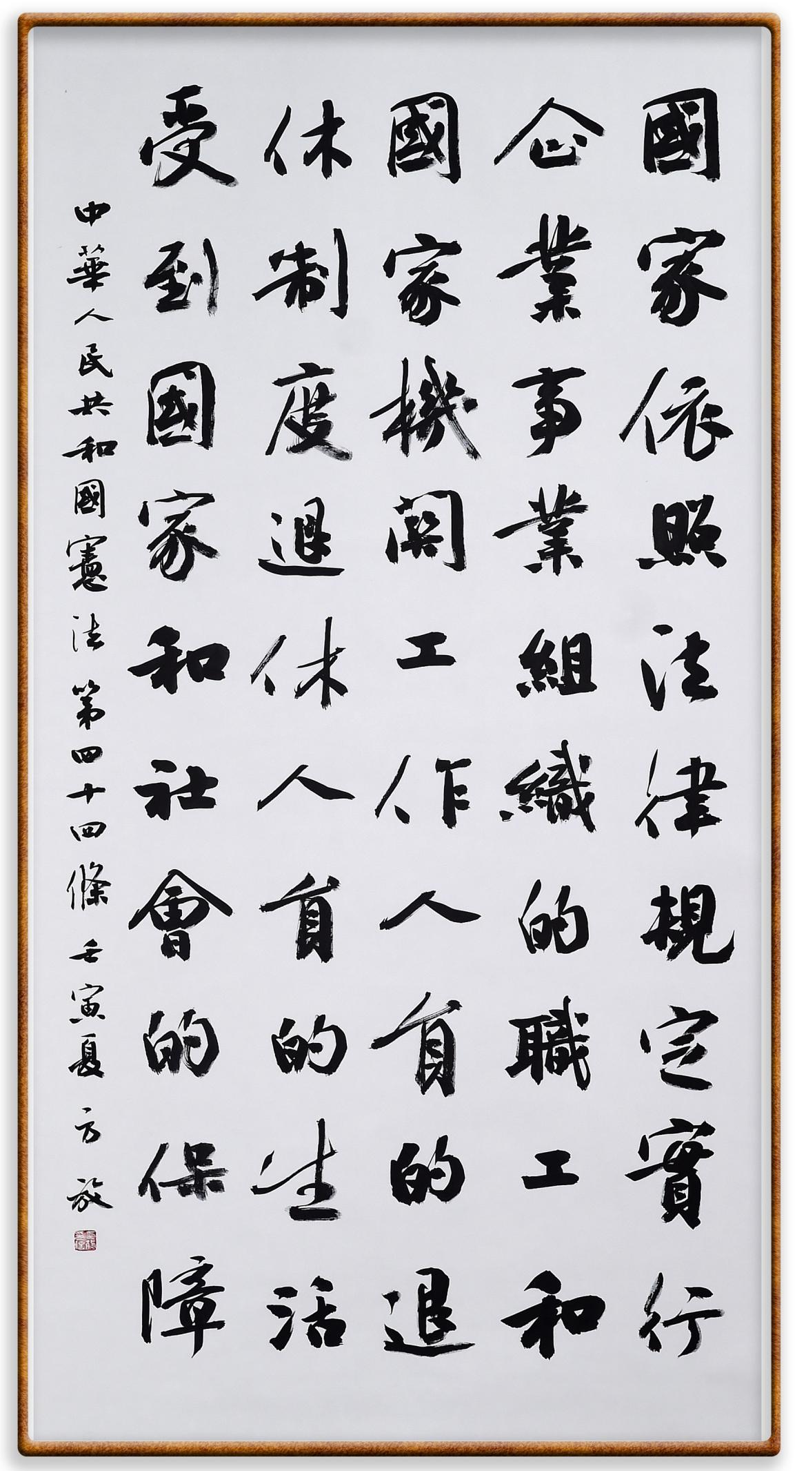 繼《中華人民共和國民法典》《中華人民共和國土地管理法》《中華人民共和國土地管理法實施條例》《中華人民共和國法律援助法》之后,法治日報社聯(lián)合北京市司法局、北京書法家協(xié)會,將筆端對準《中華人民共和國憲法》和《中華人民共和國行政處罰法》。